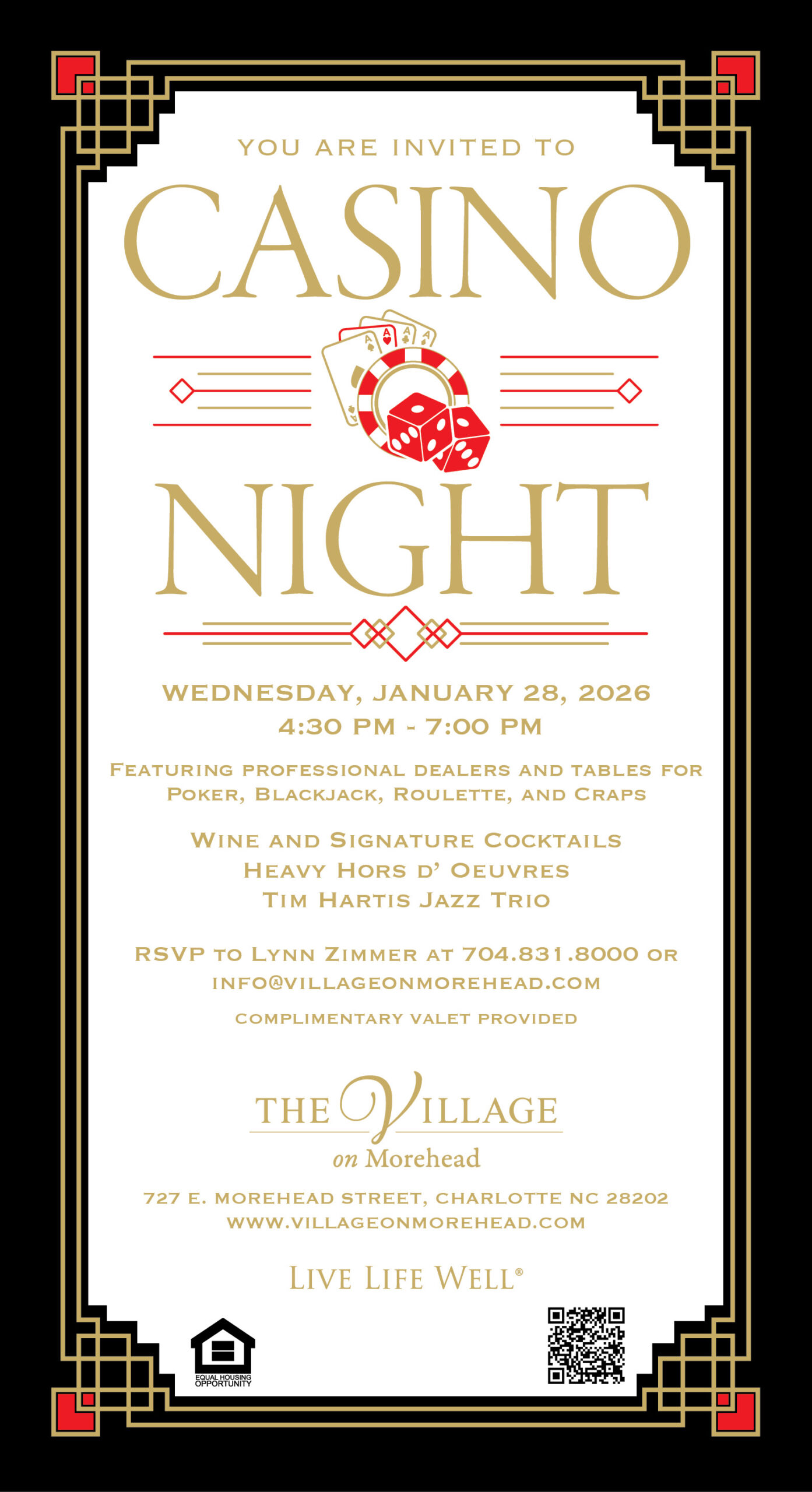 WEDNESDAY, JANUARY 28, 2026 - 4:30 PM - 7:00 PM RSVP TO LYNN ZIMMER AT 704.831.8000 OR info@villageonmorehead.com